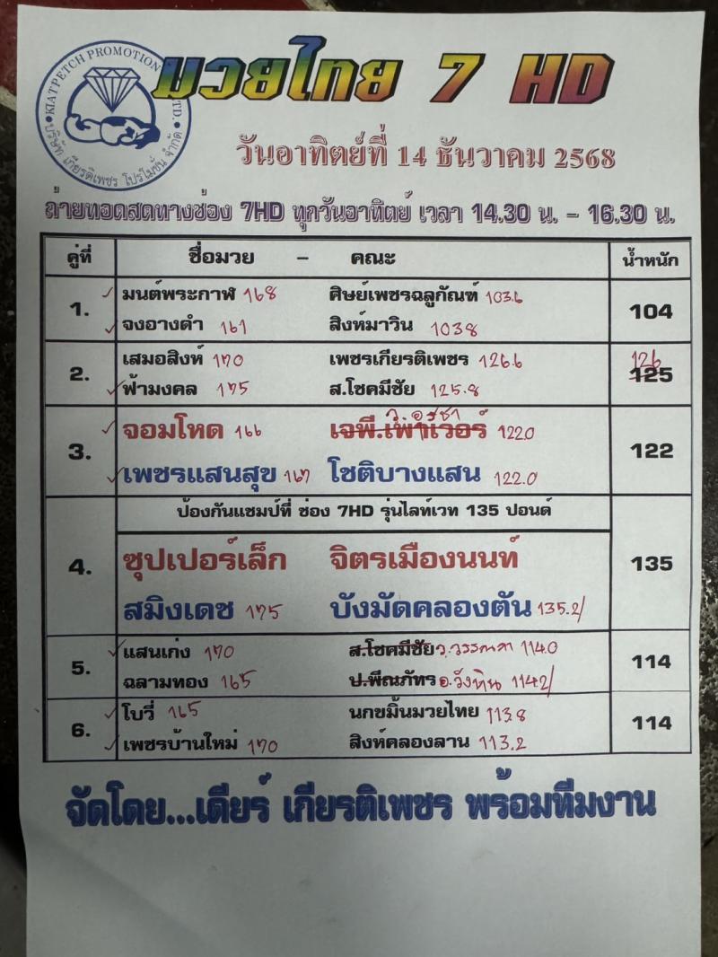 | # ศึกมวยไทย 7 สี 14/12/2568 |