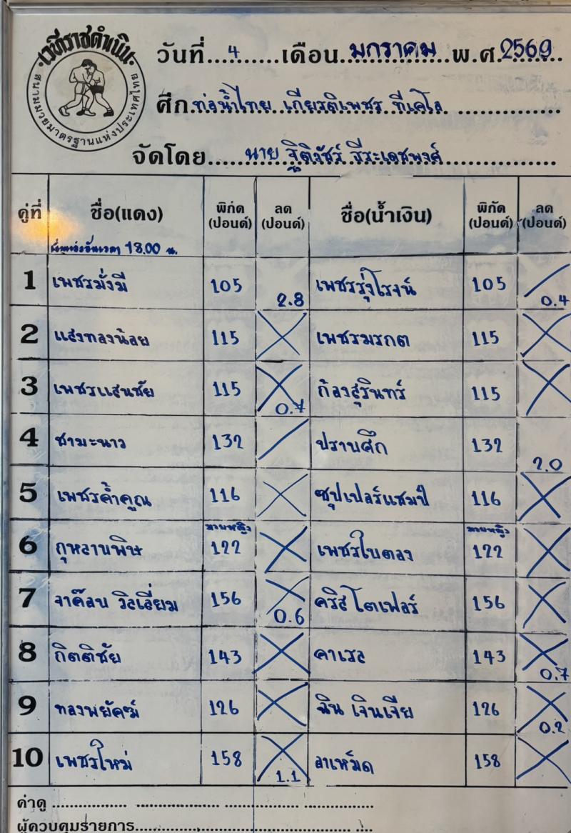 | 04/01/2569 20:30 น. | จาค๊อบพิคเตอร์ บุญลานนามวยไทย |