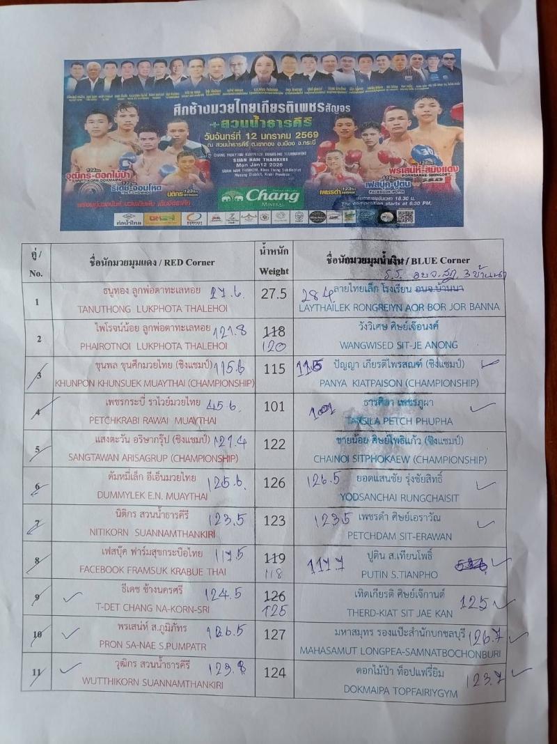 12/01/2569 19:00 น. ดัมมี่เล็ก ทีเอ็น.มวยไทย เนื้อตัวนักมวย